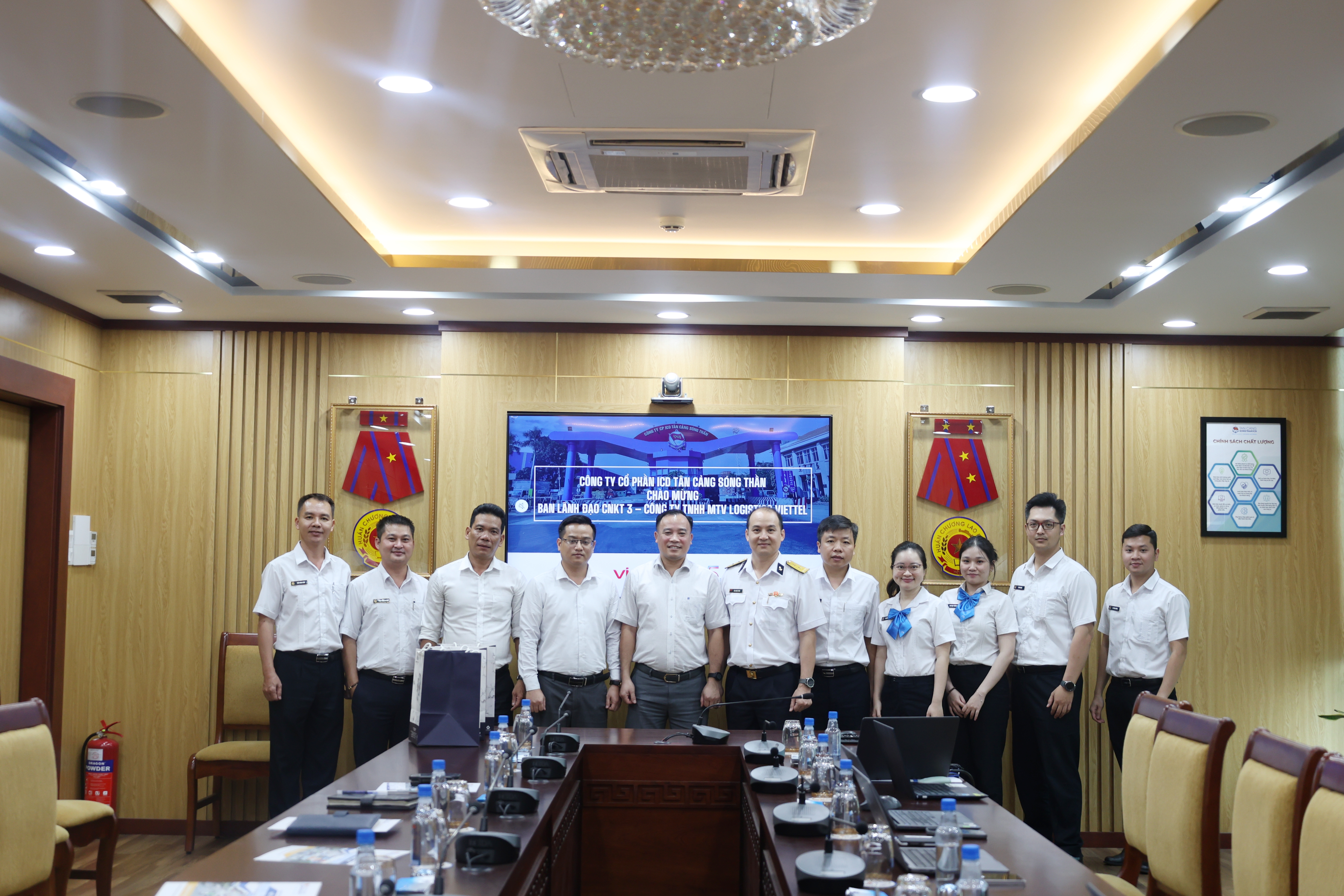 Ngày 05/04/2025 vừa qua, Công ty Cổ phần ICD Tân cảng Sóng Thần (ICDST) đã tổ chức buổi đón tiếp và làm việc với Đoàn công tác của lãnh đạo Chi nhánh Khai thác 3 (CNKT3)/Viettel Logistics, do đồng chí Trung tá Hoàng Anh Tuấn – Giám đốc Chi nhánh làm Trưởng đoàn cùng các đồng chí Phó Giám đốc, TP Kinh doanh và TP Vận hành. Buổi làm việc diễn ra trong không khí trang trọng, phấn khởi và thể hiện sự đồng thuận cao giữa hai đơn vị trong định hướng hợp tác chiến lược, mở rộng năng lực cung ứng và phát triển chuỗi dịch vụ logistics tích hợp, hiện đại.